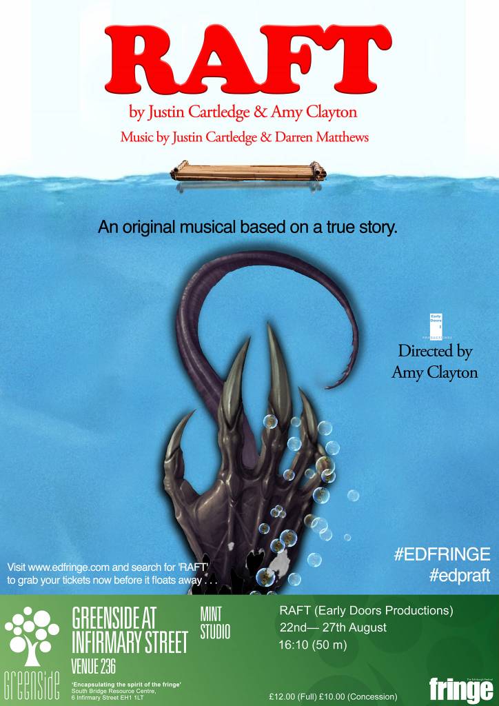 Raft is an original production by Early Doors Productions. The show follows four women, seemingly trapped on a raft in the middle of the ocean, hunted by a mystical sea monster. Raft focuses on the themes of abuse, bravery and friendship.